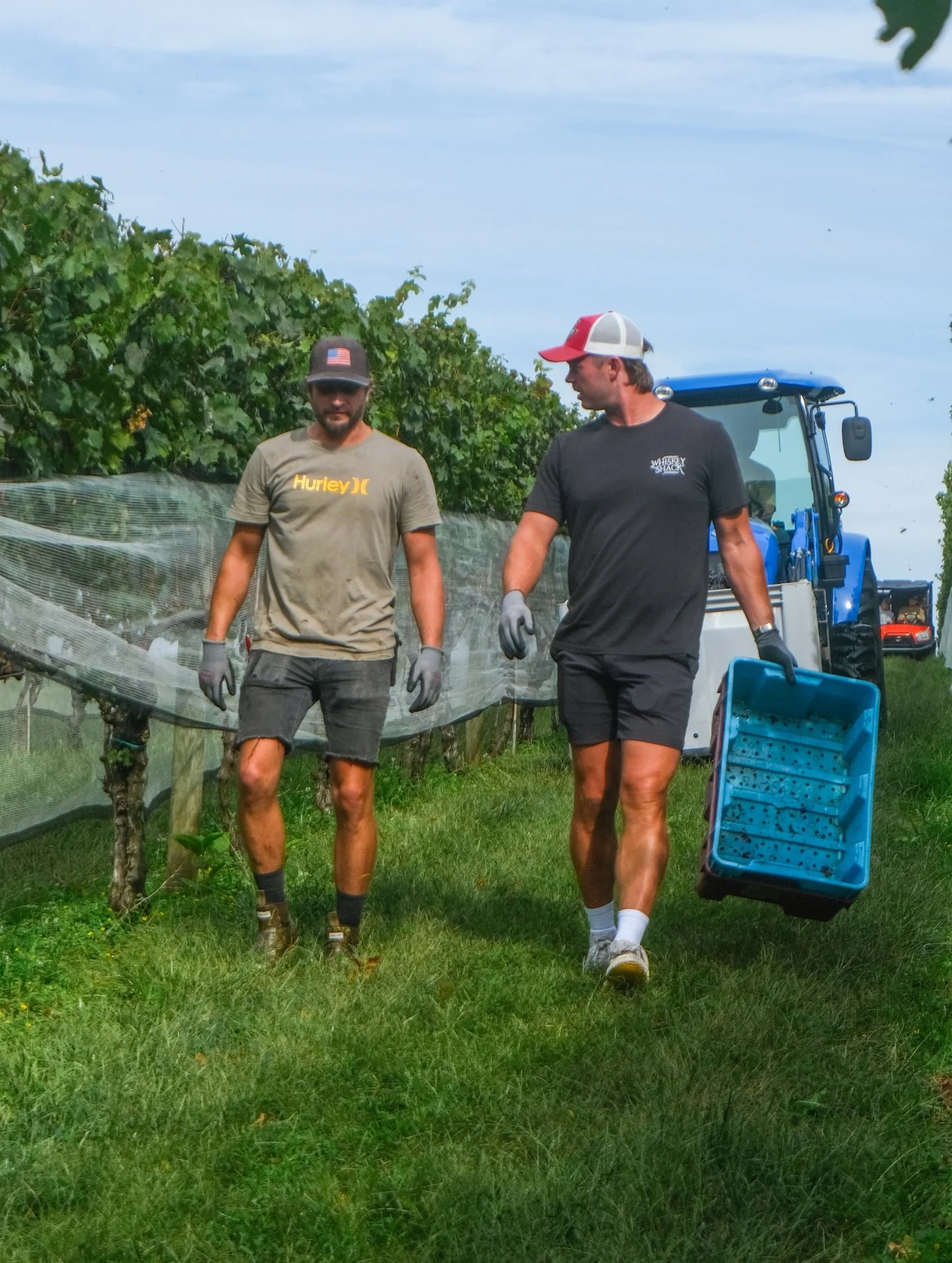Our grape plot began in 2010 with 3,000 vines planted on the family farm. Now 14,000 vines make up the 18 unique varieties of grapevines grown on our site. Each block is meticulously maintained by friends and family, ensuring care goes into each vine.